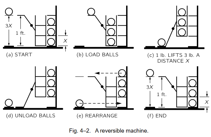 所以经过可逆机后重力势能没有变化,定义为高度和重量的乘积(都是相对的,和度量有关,不同的比例尺或者单位最终只有系数差异)